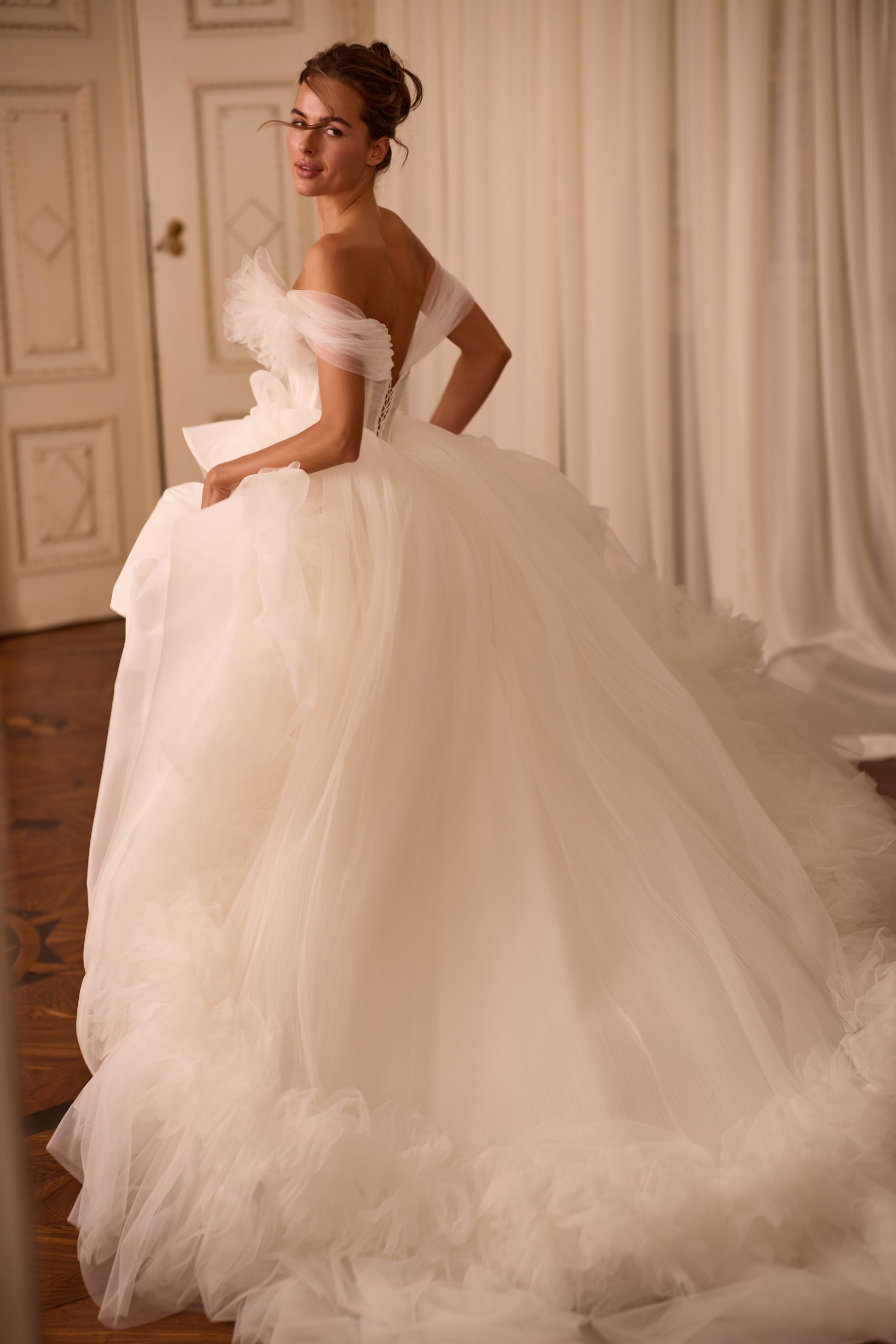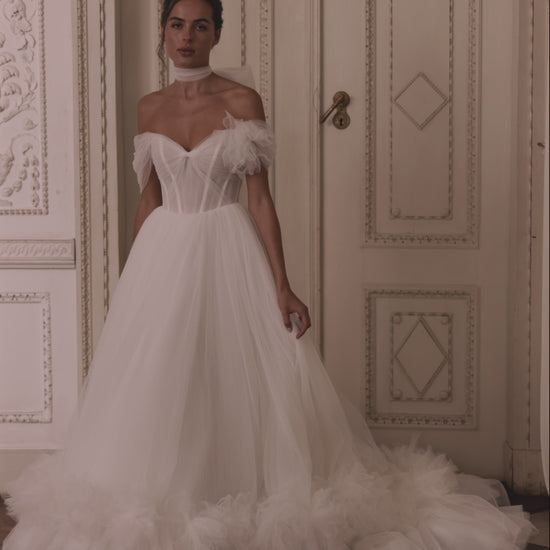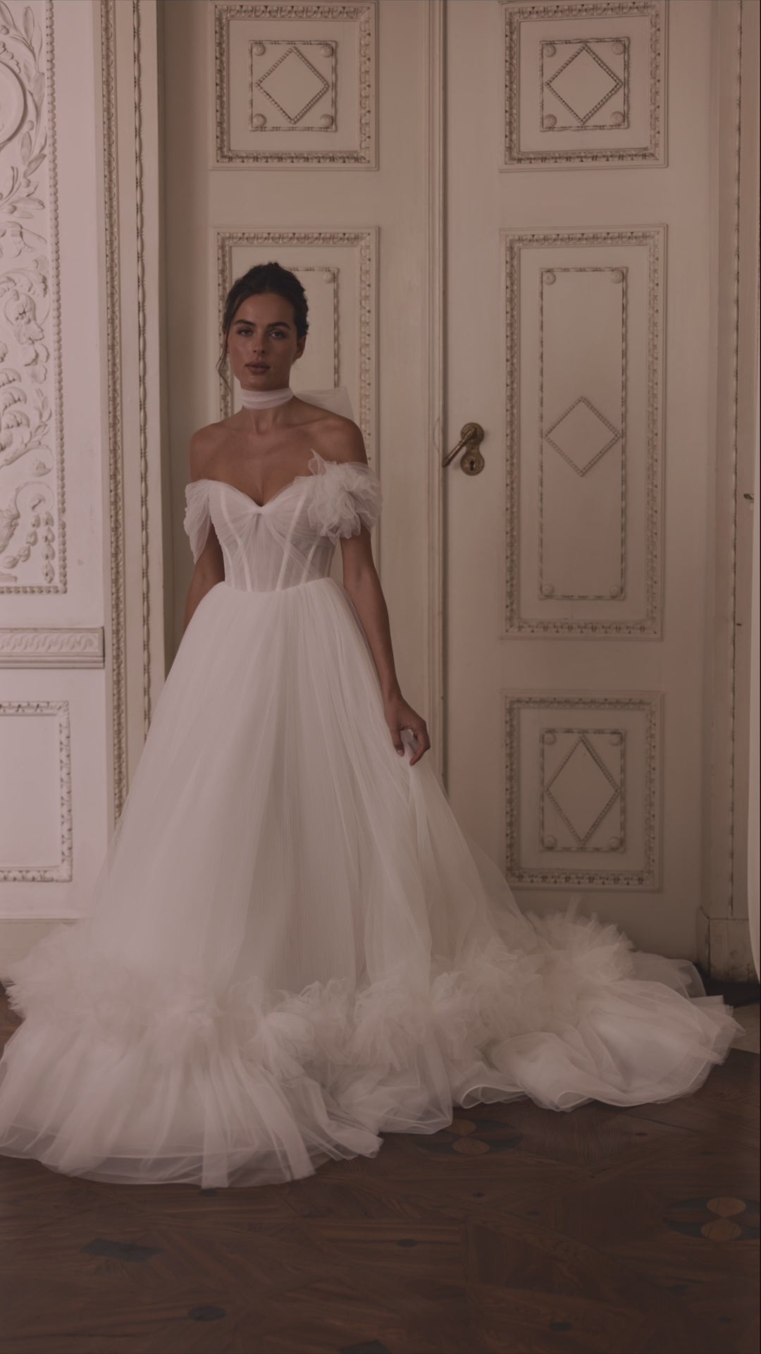 Weightless yet grounded, romantic without excess — made for the bride who drifts in, but leaves a lasting imprint.